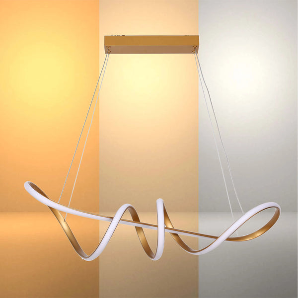 This striking collection of modern LED pendant lights offers a variety of stylish designs to illuminate your home. From interlocking rings in gold, black, or silver and white, to a tiered rose gold and frosted glass design, and a sleek gold wave pendant, you're sure to find the perfect centrepiece.